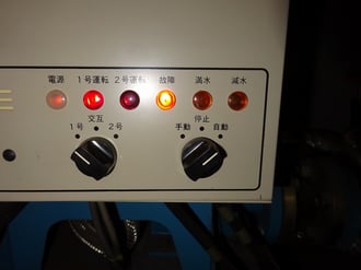 交互運転(ポンプは通常2台で1セット。一つだけで動かしていると焼き切れたり、壊れた際に給水が止まってしまうための安全策)が通常ですが、スイッチをひねって各ポンプの確認。