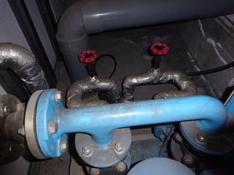 ここは、地下の受水槽から汲み上げていますが、150パイの通気管らしきものが。外部とツーツーになっているので、どうも受水槽内部が凍ってしまったらしい。