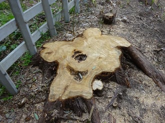 聞いてみると、つい最近、大きくなりすぎたから氏子中で業者さんに依頼して伐ってもらたとのこと。