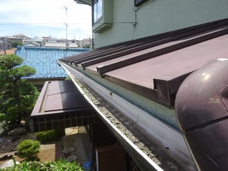 雨水と泥等が溜まりやすい、軒樋のコーナー部も角度調整・泥の取り除きを行い、樋の取替え等を行わずに、無事に雨水がスムースに流れるようになりました。