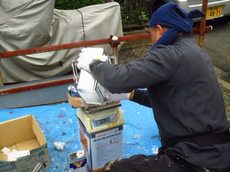 2液型のものを使用する際は、寸分たがわずそれぞれの液の重さを計りながら、規定値通りに良く混ぜ合わせてから、塗り始めます。