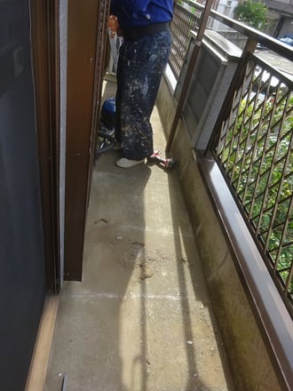 ベランダも粉塵に気を遣いながら、下地を削っていたら、埃だらけに(これは、その一部)。