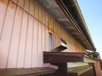 隙間のある、必要のない枠材を取り除き、コーキングを塗って、ステンレス換気フードをビスどめ。