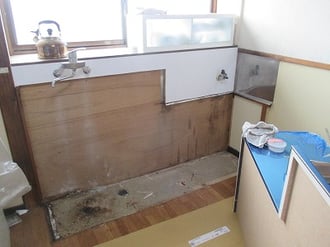既存のキッチンパネル、水栓(配管とも)、ガス管も位置を変えずに、なるべく費用を掛けないように計画。