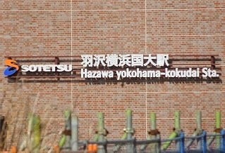 SOTETSU(相鉄)のマークと並んで、【羽沢横浜国大駅】と。