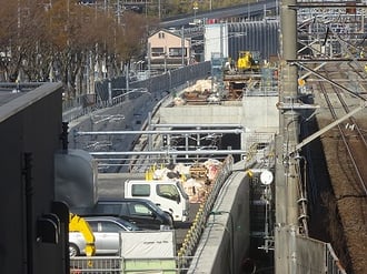 これが、新横浜側から見た、現在の羽沢新横浜駅の進捗状況(2019年3月26日現在)。