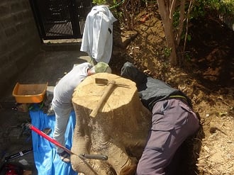 この根の塊は、非常に重いので、二人でも運べないため、一段斬って、さらに周辺も。