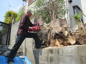 地面よりも上部も硬いながら、一部はチェーンソーが入りました。