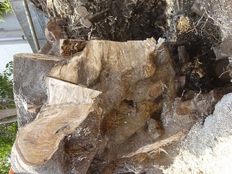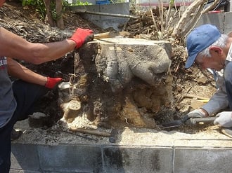 ②この樫の木の根は、硬すぎてチェーンソーでは、刃がたたない。