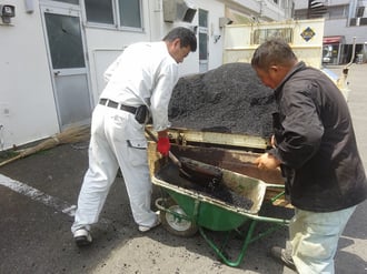 少しでも力になれればと、一緒にアスファルトおろし。