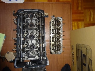 空気が薄い状態で、飛ばしていたら、ブローして、エンジンを下ろして、オーバーホールがてら組み直した際に、予備に取っておいて、一度組付けたけど、やはりキャブ車とは相性が悪いようで、まるで回らなかったので、上述のヘッドに組み直したような?