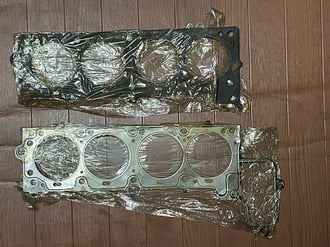 下がメタルガスケット、ガスケットが抜けにくく、薄くすればするほど、僅かながら圧縮比が上がります。その分、エンジンに負荷は掛かりますが。