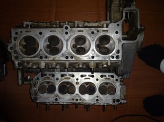 エンジン2基分。裏表が今となっては分かりませんが、1番気筒・2番気筒か、3番・4番かの何れかが、カーボンだらけ。不完全燃焼気味だったみたいですね。
