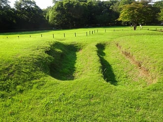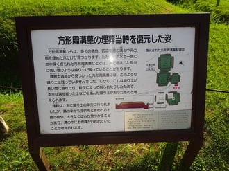 お墓の遺構跡を、【保護盛土】と、発掘時には存在していなかった【復元盛土】で保存しています。