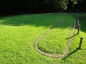 復元しきれなかったお墓は、形状が分かるように、石で囲ってあります。