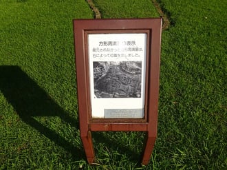 この看板の上空写真が、昭和47年から始まった頃のものと思われ、弥生時代の地層が見えています。