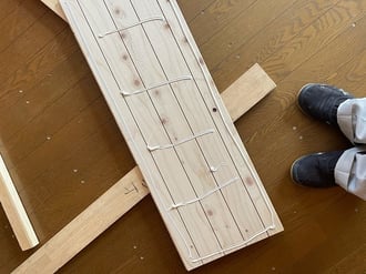 いきなり重ね張りをするのではなく、ひと手間掛かりますが、既存フローリングを半ねじのコースレッド(木ねじ)で、既存根太にしっかりと押さえていくことです。