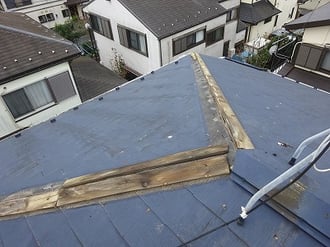 台風や強風でよく飛ばされるのが、棟板金。
