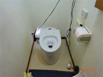 2階のトイレは、INAXの便器・タンクはまだ使えるているので、ウォシュレットだけ、TOTOのアプリコットというヘンテコな組み合わせ。