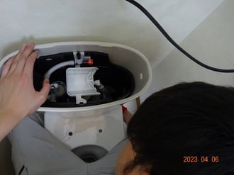 内部の部品を組み立てて、便器に据え付け。