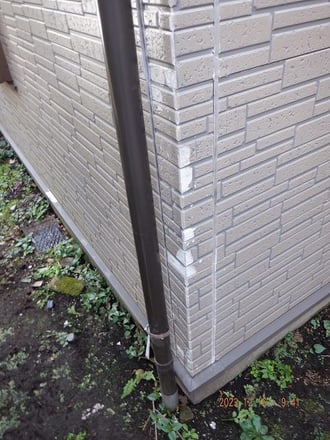 気になって、お客様と見回ってみたところ、浴室(ユニットバス)外部のサイディング コーナー役物の表面が剥離しだしていました。