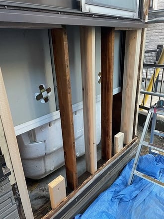 ユニットバス内部のシーリングも、口が開いていたので、シールの打ち替えも。(こちらは、窓ガラスに付着した結露水が、内外ともに滴り続けていたことが原因。雨染みも一因)