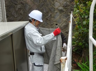 【一部だけ、外部改修①】のつづきです。 砥石が、隣地に入って何かしています。 お互いに、【変わり者】を自負している仲ですが、そうかついに・・・ そんなに、闘牛士になりたかったんだね。君は。 それなら、赤いマント、用意しておくよ。