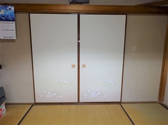 戸襖(キッチン側が洋間なので、クロス紙仕様・こちら和室側が襖仕上げ)の、壁紙クロスを交換しようとしたところ、戸襖の下地ベニヤが思った以上に劣化していて、クロス紙を貼ることが不可能だったため(私の確認不足でもあります)、この戸襖ごと交換させて戴きました。...