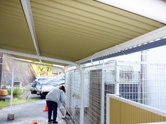 サビと、塗膜の剥離で困っていた駐輪場屋根を、ガルバリウム製大波板に交換しました。