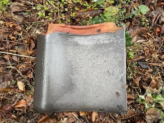 ケラバ(切妻屋根の端部)の瓦屋根が、庭に落ちていると。 春一番で、飛ばされたようです。 何より、これに当たらなくて良かったですね。