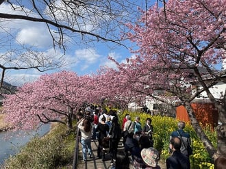 3月2日、日曜日に、予定より遅く咲き、延期された河津桜まつりに、行ってきました。